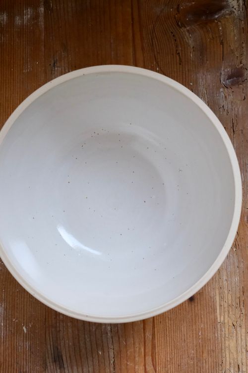 Perfekt für Salat und vieles mehr, Tonfarbe Hellbeige, weiß glasiert, außen mit Engobe gestaltet, unique, H 8,7cm, Durchmesser oben 21cm, Fassungsvermögen 1700ml.