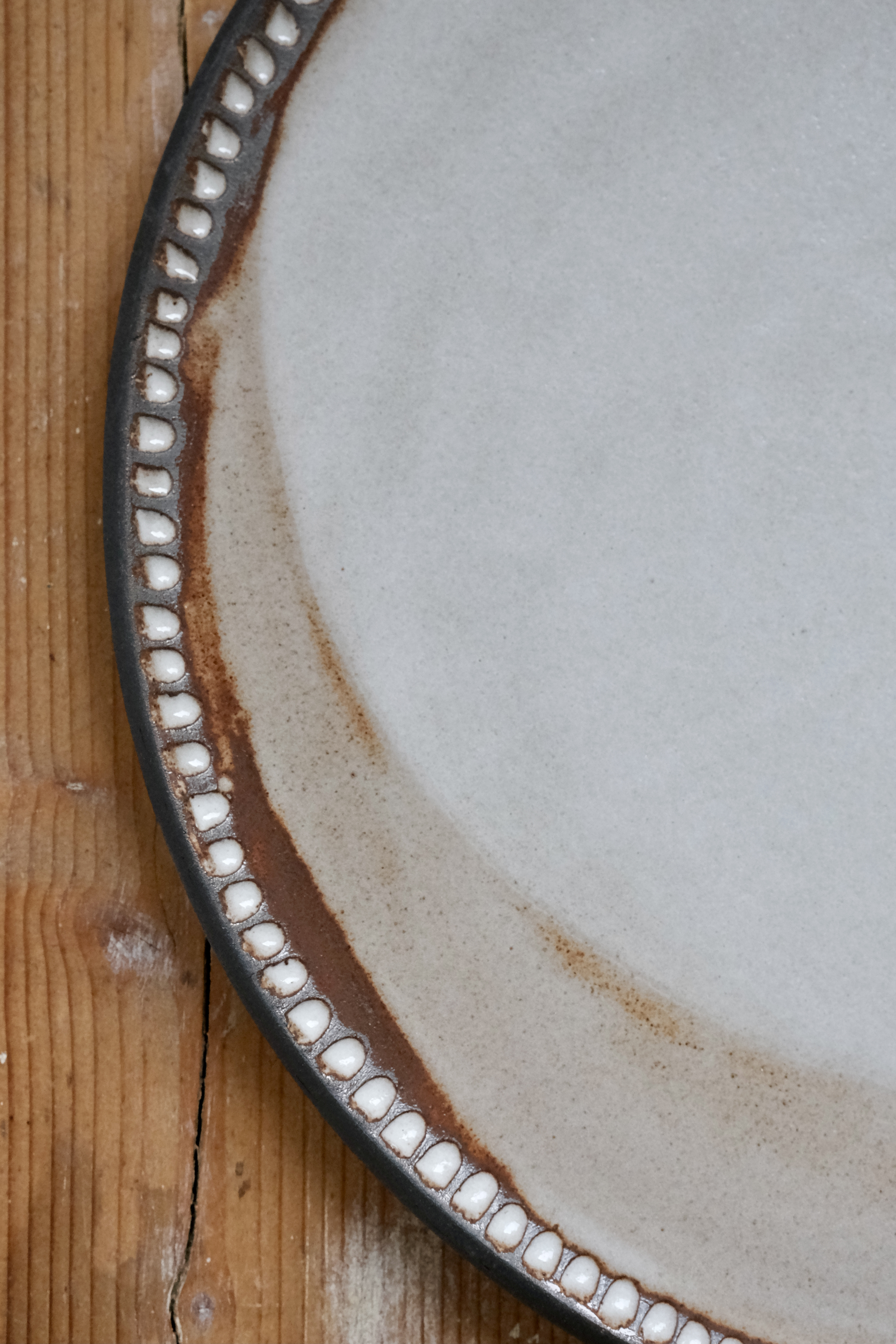 Perfekt für Tapas/Kuchen/ und vieles mehr, Tonfarbe Schwarz, weiß glasiert mit Farbverlauf, unique, mit besonderem Rand, Durchmesser 26cm.