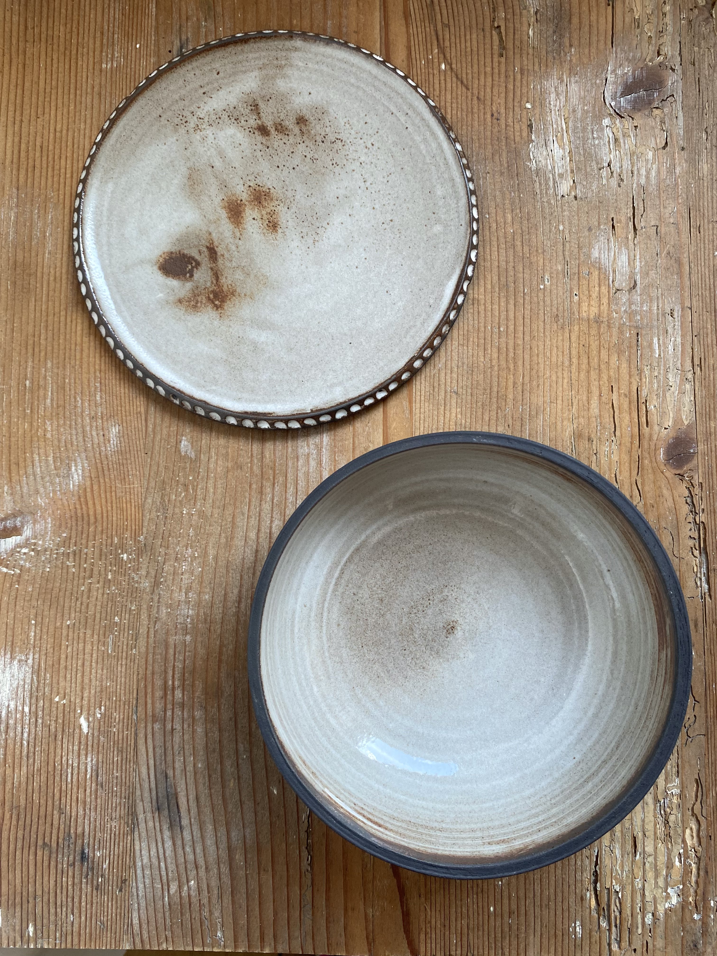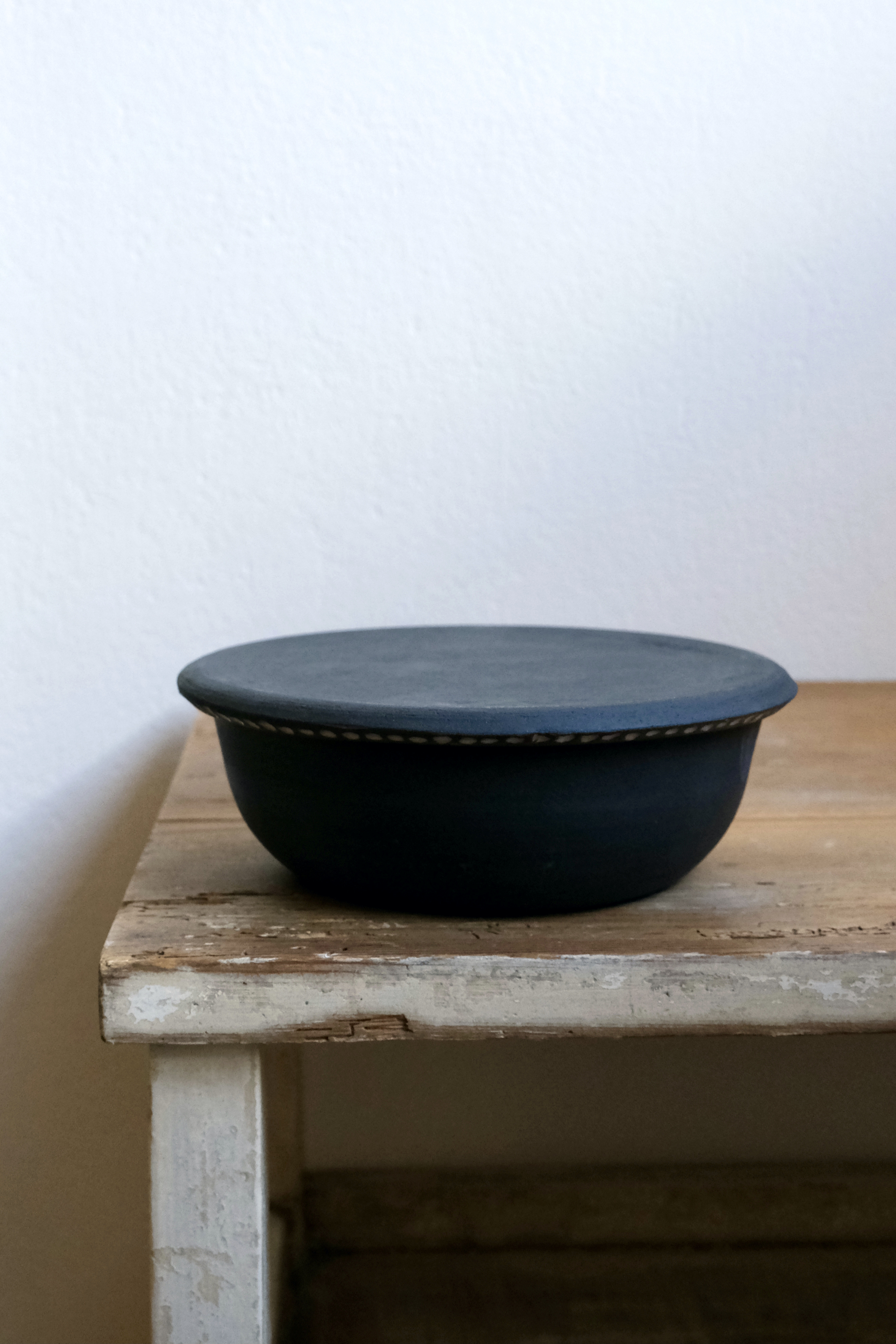 Vielseitig einsetzbar, für Butter/ Käse/ kleine Mahlzeiten, Teller kann als Abdeckung dienen - andersrum die Schüssel. Tonfarbe Schwarz, innen weiß glasiert, Teller mit verziertem Rand. Durchmesser Teller 15 cm. Fassungsvermögen Bowl 430ml.